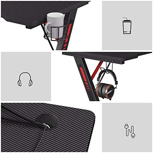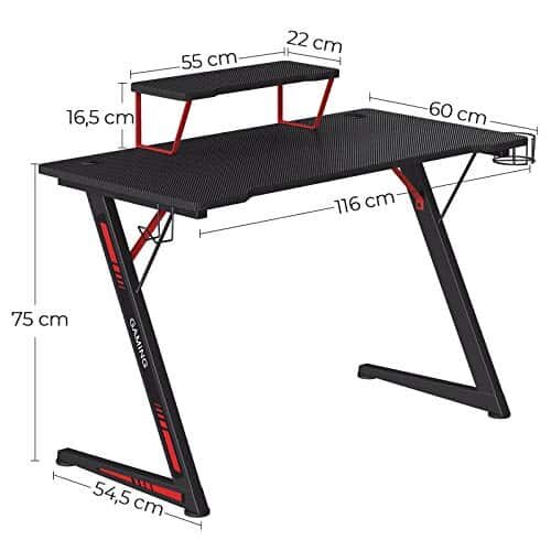 Domitės kompiuteriniais žaidimais ar daug laiko praleidžiate prie kompiuterio? Juodos ir raudonos spalvos žaidimų stalas SONGMICS sukuria idealią atmosferą varžybiniams žaidimams. Stalas turi pakankamai vietos monitoriams, pelei, klaviatūrai ir kitoms reikmėms. Šonuose yra papildomi laikikliai ausinėms ir gėrimams, todėl jis yra itin praktiškas.