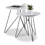 Pristatome elegantišką ir funkcionalų dviejų staliukų komplektą, kuris taps išskirtiniu akcentu jūsų namuose. Šie staliukai, pasižymintys moderniu dizainu ir subtilia baltos bei juodos spalvų kombinacija, puikiai dera prie bet kokio interjero stiliaus.