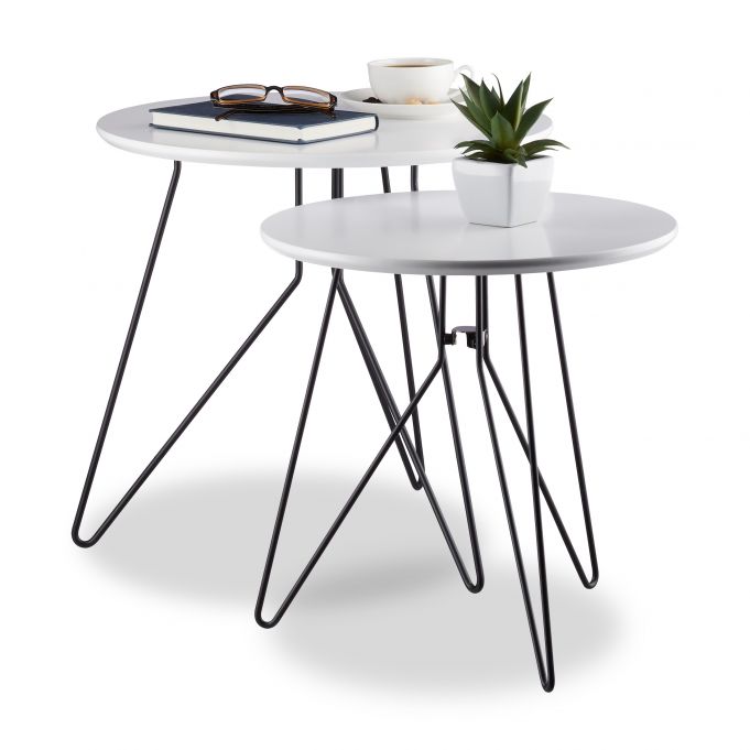 Komplektas iš 2 staliukų, baltos/juodos spalvos
