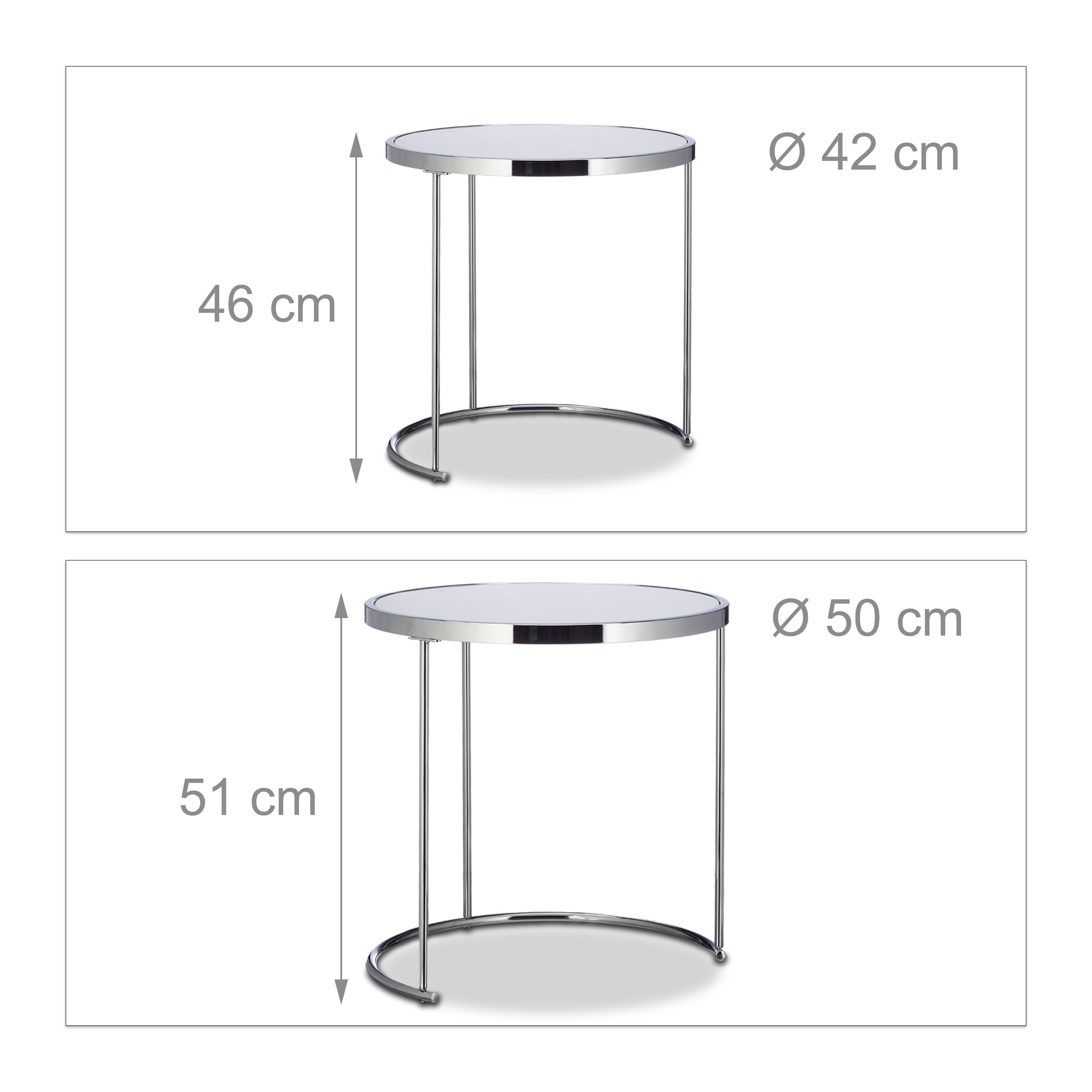 Pristatome elegantišką ir modernų staliukų komplektą, kuris taps puikiu akcentu jūsų namuose. Šis komplektas, sudarytas iš dviejų apvalių staliukų, pasižymi chromuotu rėmu ir matiniu stiklu, suteikiančiu šiuolaikišką išvaizdą. Tai ne tik stilingas, bet ir funkcionalus sprendimas jūsų interjerui.