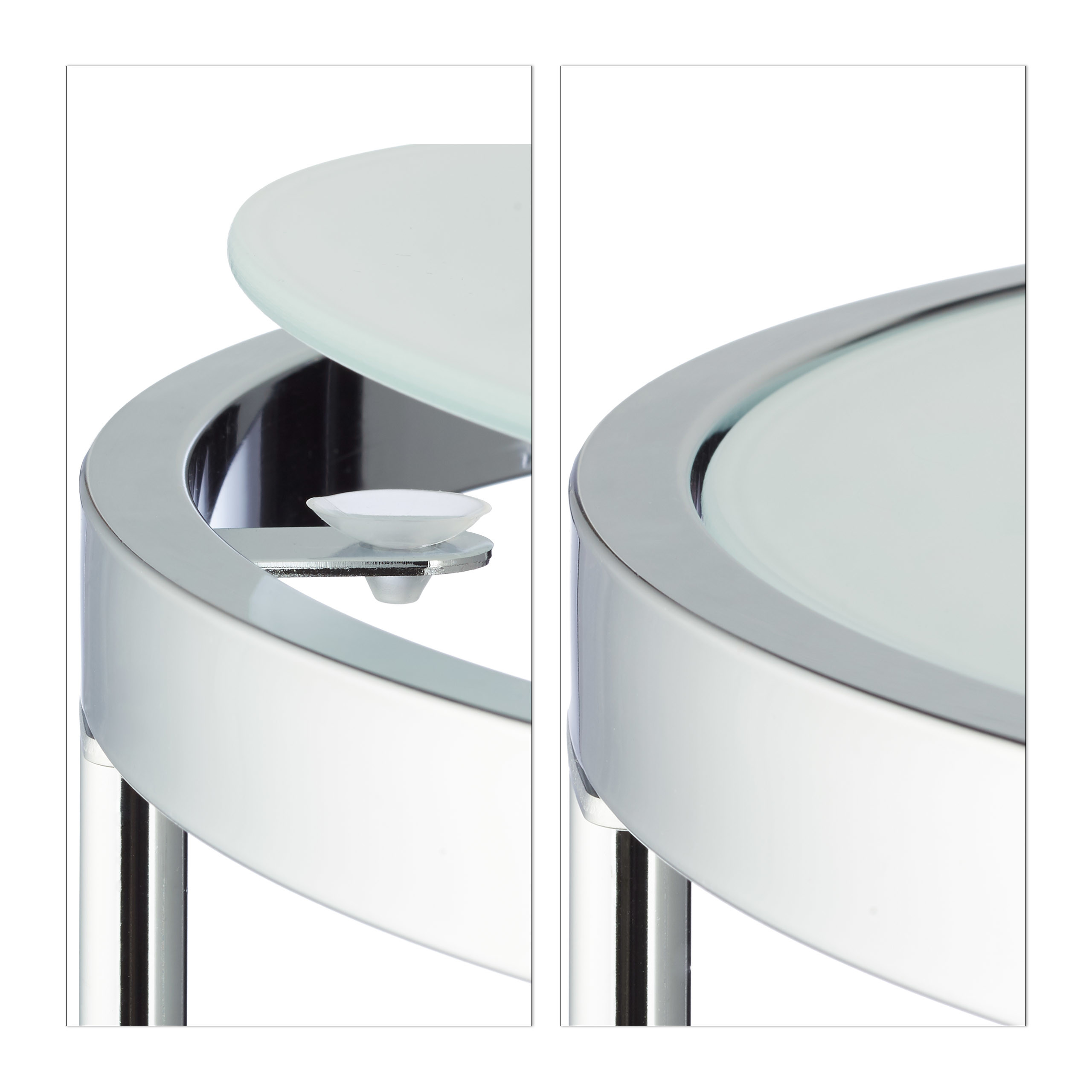 - Modernus dizainas: Chromuotas rėmas ir matinis stiklas suteikia staliukams šiuolaikišką ir elegantišką išvaizdą.