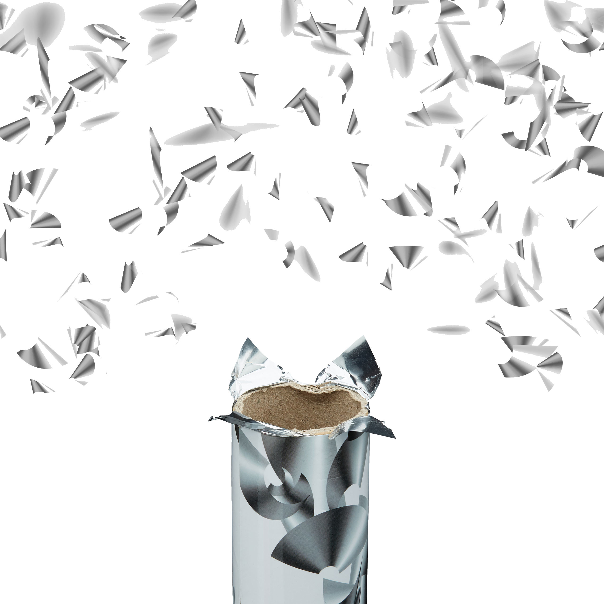 Konfeti patranka 40x5x5cm., sidabrinės spalvos