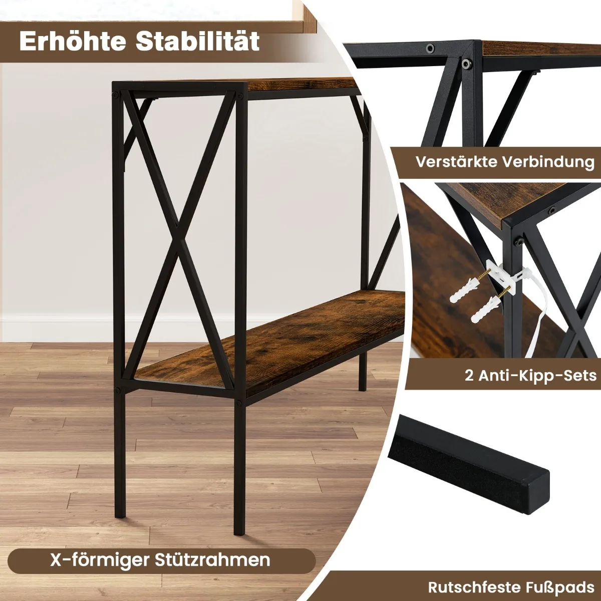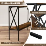 Konsolinis staliukas 120x23x74 cm rudos ir juodos spalvos puikiai pritaikomas tiek įėjimo zonose, tiek gyvenamosiose erdvėse ar koridoriuose. Kompaktiškas pramoninio stiliaus konsolės dizainas su dviem pakopomis leidžia efektyviai tvarkyti ir eksponuoti įvairius daiktus, palaikant tvarką bei estetinį vientisumą.