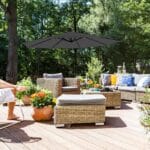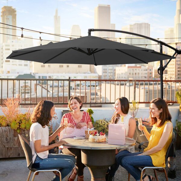Neužmirštamai vasarai: Nesvarbu, ar norite pasnausti sode, pavalgyti su draugais terasoje ar pasimėgauti kavos pertraukėle su šeima lauke, šis skėtis įgyvendins visus jūsų planus. Pagamintas iš 180 g/m² poliesterio audinio, jis užtikrina puikią UV apsaugą iki UPF 50+. Taigi jums nereikės nerimauti dėl ryškios saulės šviesos, kuri gali pakenkti akims ar paraudinti odą. Vasarą būtina turėti!