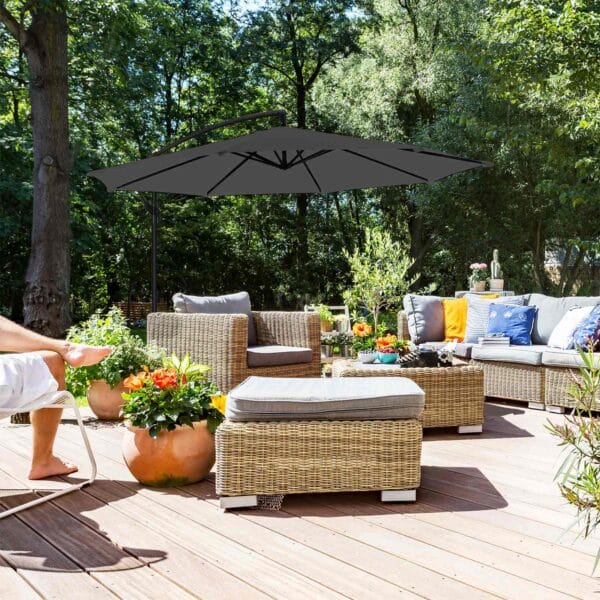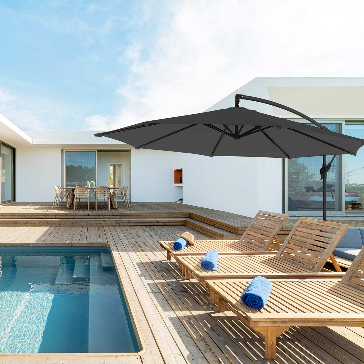Šilta saulė, mėlynas dangus, grynas oras, nuostabi gamta… Ko lauki? Laikas atsipalaiduoti lauke! Bijote stiprių saulės spindulių? Nesijaudinkite. Tiesiog atidarykite šį SONGMICS Ø 300 cm konsolinį skėtį ir mėgaukitės nuostabiu oru pavėsyje!