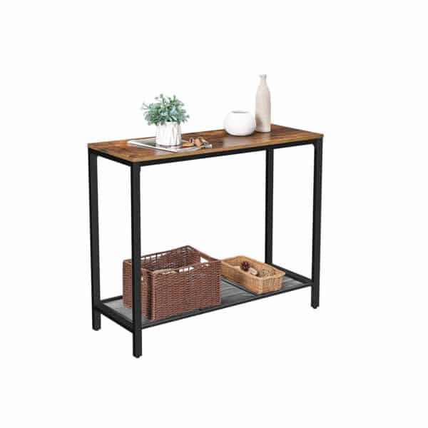 Pagamintas iš aukštos kokybės medžio drožlių plokštė (MDP) ir tvirto plieno, šis stalas yra patvarus ir ilgaamžis. Jo matmenys yra 100 x 35 x 80 cm (plotis x gylis x aukštis), o svoris siekia 8 kg. Maksimali statinė paviršiaus apkrova yra 20 kg, o maksimalios grotelių lentynos apkrova – 5 kg.