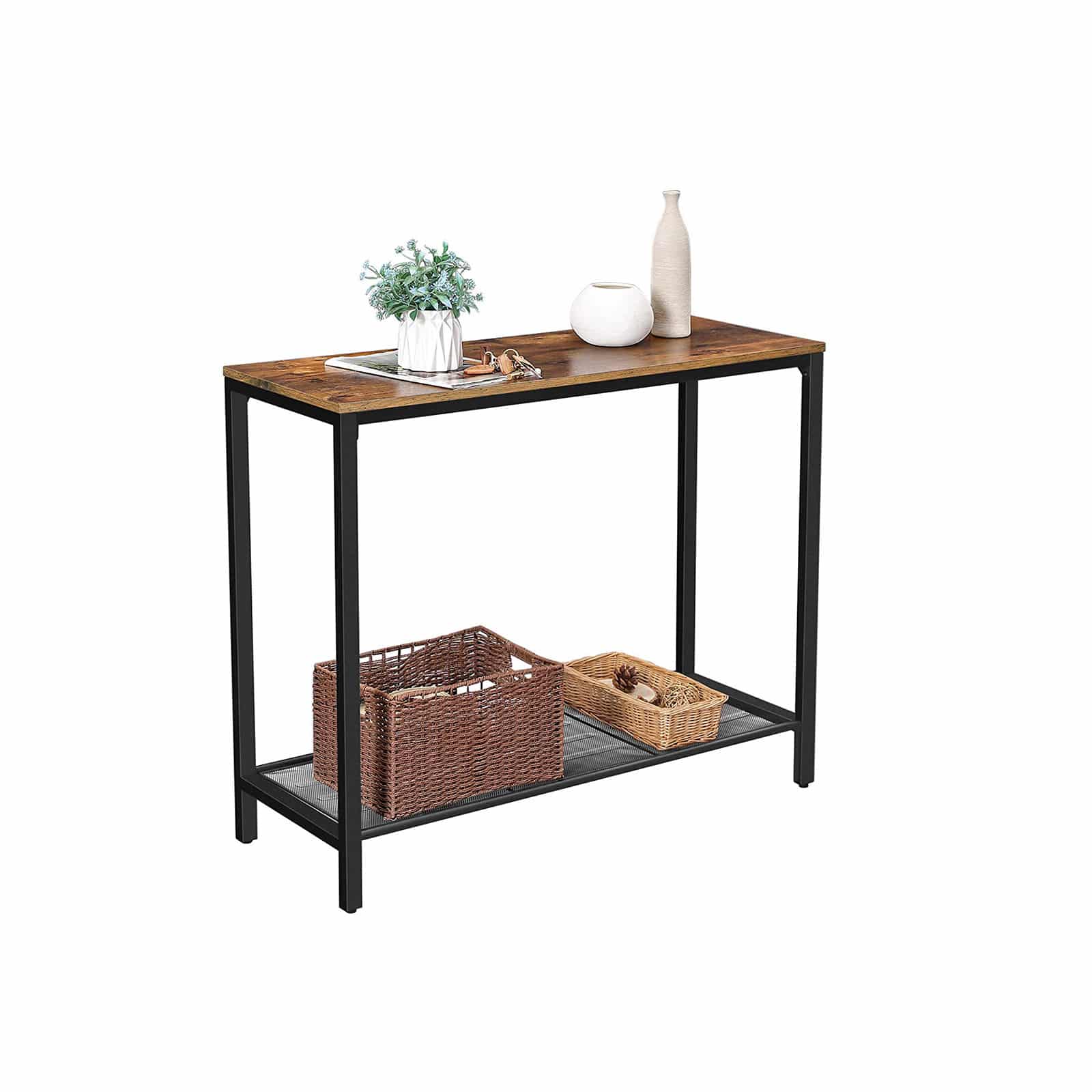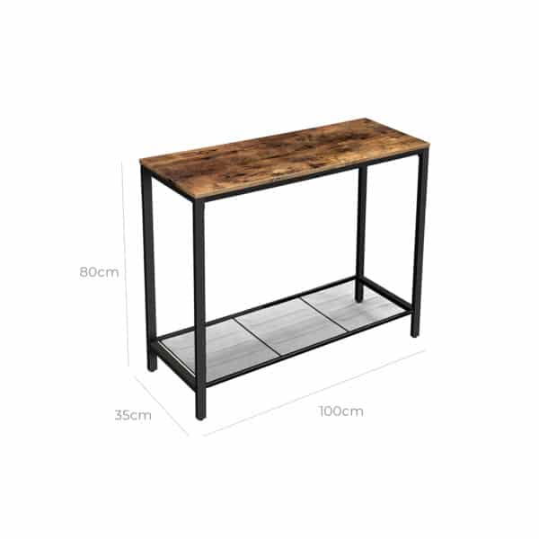 Konsolinis stalas 100 x 35 x 80 cm, tamsiai rudos spalvos, yra puikus pasirinkimas jūsų namų ar biuro interjerui. Šis stalas pasižymi vintažine išvaizda ir tamsiai ruda spalva, kuri suteikia elegancijos ir stiliaus bet kuriai erdvei.