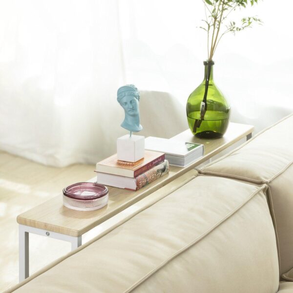 Konsolinis stalas 120x20x65 cm yra puikus pasirinkimas jūsų namų interjerui. Jo medinė stalviršio dalis suteikia šilumos ir rustiškumo pojūtį, o dizainas leidžia lengvai pritaikyti stalą įvairiems poreikiams ir derinti su kita interjero įranga.