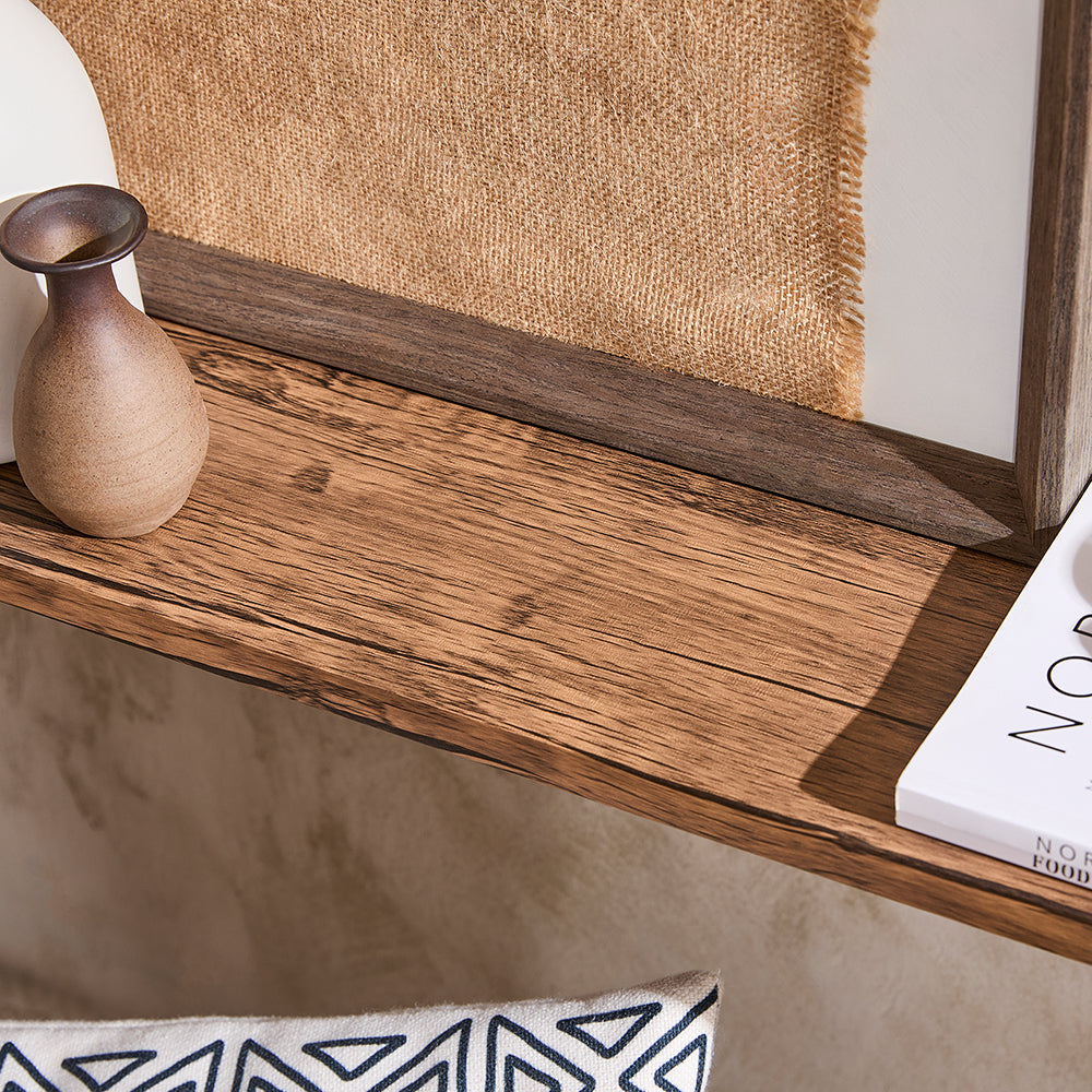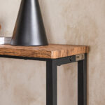 Konsolinis stalas 120x20x65 cm, juodos/rudos spalvos, yra puikus pasirinkimas jūsų interjerui. Jo medinė stalviršio dalis suteikia šilumos ir rustiškumo, o dizainas leidžia lengvai pritaikyti stalą įvairiems poreikiams ir derinti su kita namų apdaila.