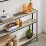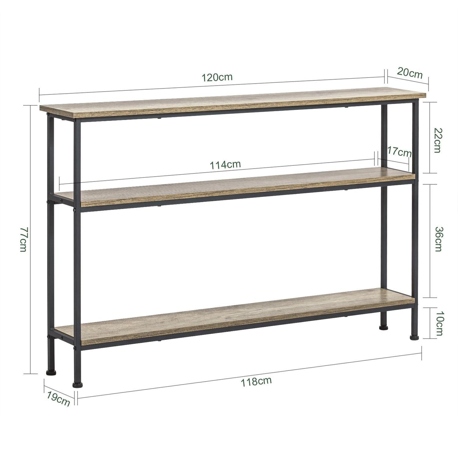 Konsolinis stalas 120x20x77 cm, šviesiai rudos ir juodos spalvos, yra puikus pasirinkimas jūsų namų interjerui. Jo medinė viršutinė dalis suteikia šilumos ir rustiškumo pojūtį, o dizainas leidžia lengvai pritaikyti stalą įvairiems poreikiams ir derinti su kita namų apdaila.