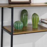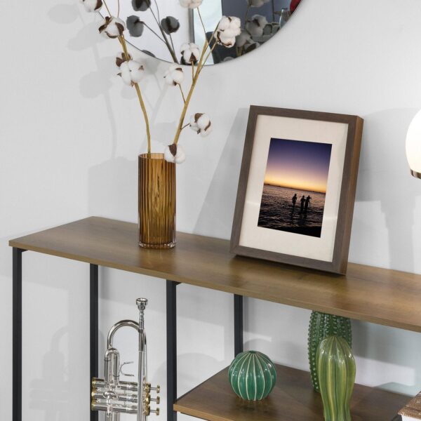 Konsolinis stalas 30x80x120 cm, rudos/juodos spalvos, yra puikus pasirinkimas jūsų namų interjerui. Jo universalus dizainas leidžia lengvai pritaikyti stalą įvairiems poreikiams ir derinti su kita namų apdaila.