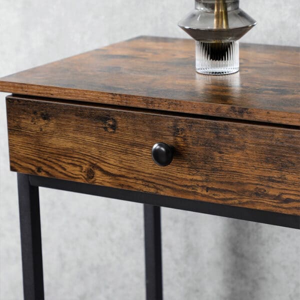 Konsolinis stalas LNT010B01, rudos/juodos spalvos, yra puikus pasirinkimas jūsų namų interjerui. Jo vintažinė ruda-juoda spalva suteikia elegancijos ir stiliaus, o tvirtos medžiagos užtikrina ilgaamžiškumą.