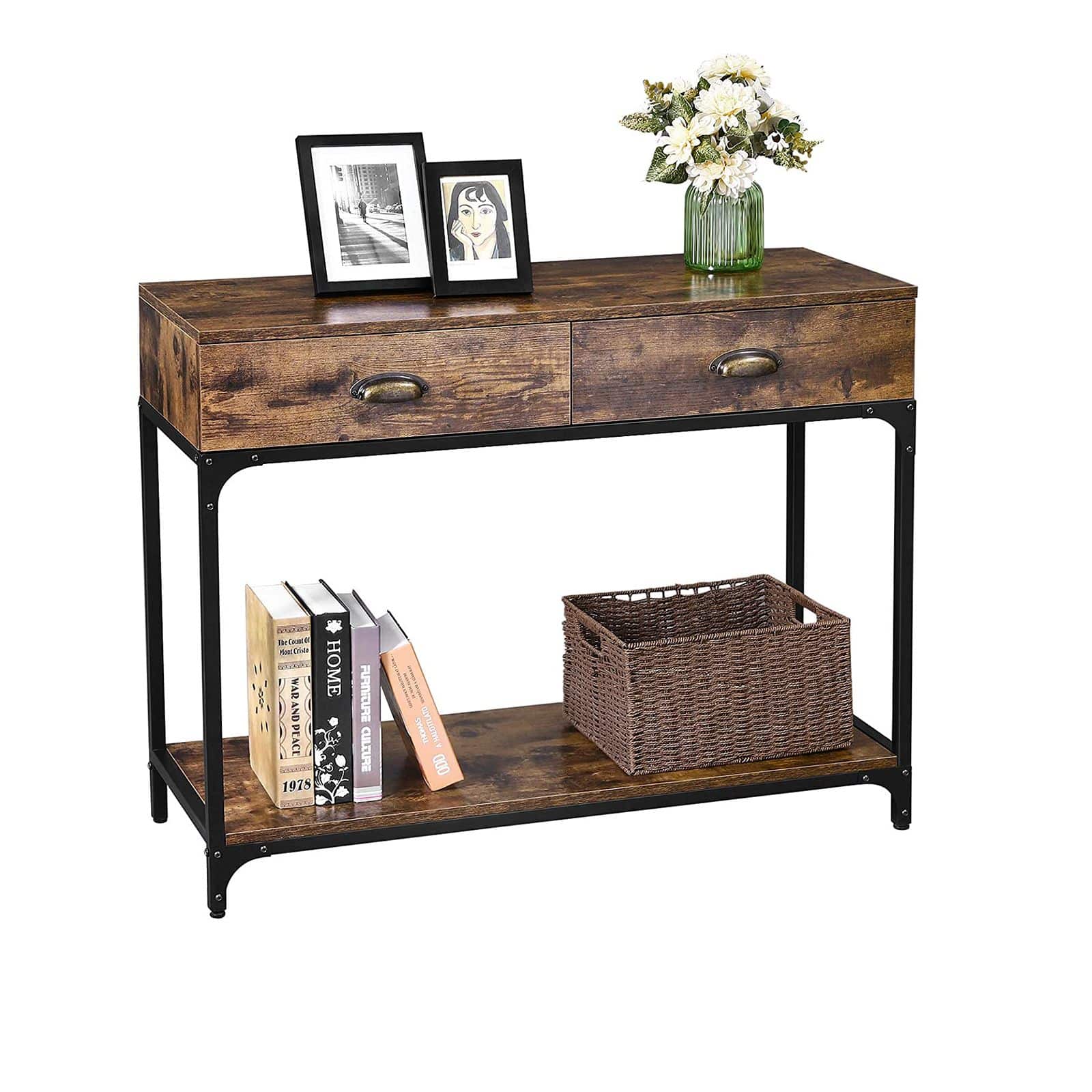 Konsolinis stalas LNT39X, rudos/juodos spalvos, yra puikus pasirinkimas tiek naujai įsikūrusiems butuose, tiek norintiems atnaujinti savo svetainę moderniu, bet kartu ir klasikiniu stiliumi. Šis pramoninio dizaino stalas iš VASAGLE leidžia sukurti stilingą ir funkcionalią erdvę.