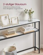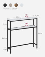 Pristatome elegantišką ir funkcionalų konsolinį staliuką, kuris puikiai papildys jūsų namų interjerą. Šis staliukas, derinantis marmuro baltą ir rašalo juodą spalvas, suteiks jūsų erdvei modernumo ir rafinuotumo.