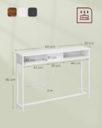 Įneškite elegancijos ir funkcionalumo į savo namus su šiuo išskirtiniu konsoliniu staliuku. Jo minimalistinis dizainas ir sniego baltumo spalva puikiai derės prie bet kokio interjero, suteikdami erdvei šviesos ir švaros pojūtį.
