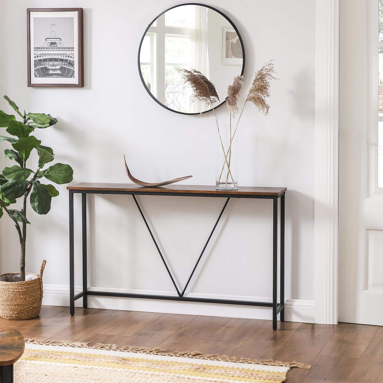 Konsolinis staliukas LNT020B01, rudos/juodos spalvos, yra puikus pasirinkimas jūsų namų interjerui. Šis staliukas ne tik stilingas, bet ir funkcionalus, todėl puikiai tiks tiek svetainėje, tiek prieškambaryje.