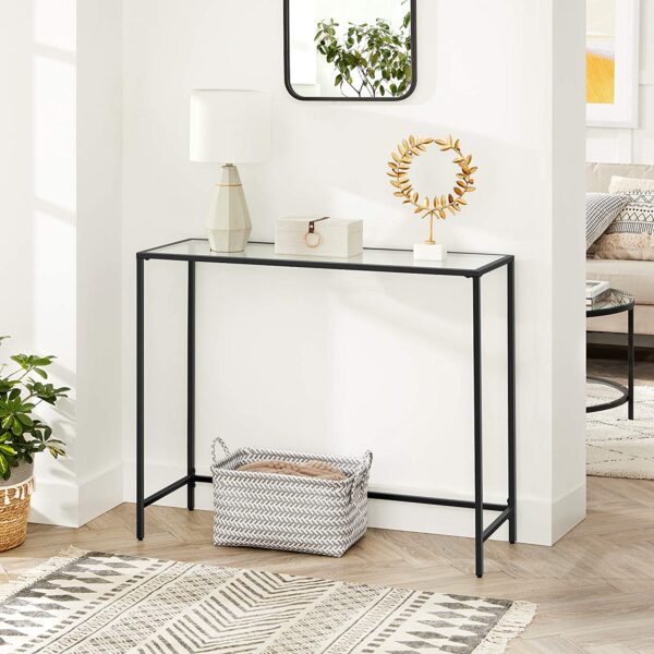 Konsolinis staliukas su grūdinto stiklo stalviršiu yra elegantiškas ir funkcionalus baldas, puikiai tinkantis bet kokiam interjerui. Jo modernus dizainas ir aukštos kokybės medžiagos užtikrina ilgaamžiškumą ir patvarumą.
