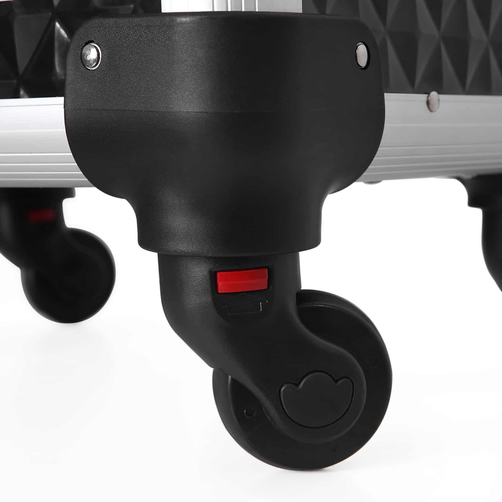 Kosmetikos lagaminas su ratukais, juodos spalvos, yra puikus pasirinkimas profesionalams ir mėgėjams, kurie nori patogiai ir tvarkingai laikyti savo kosmetikos priemones.