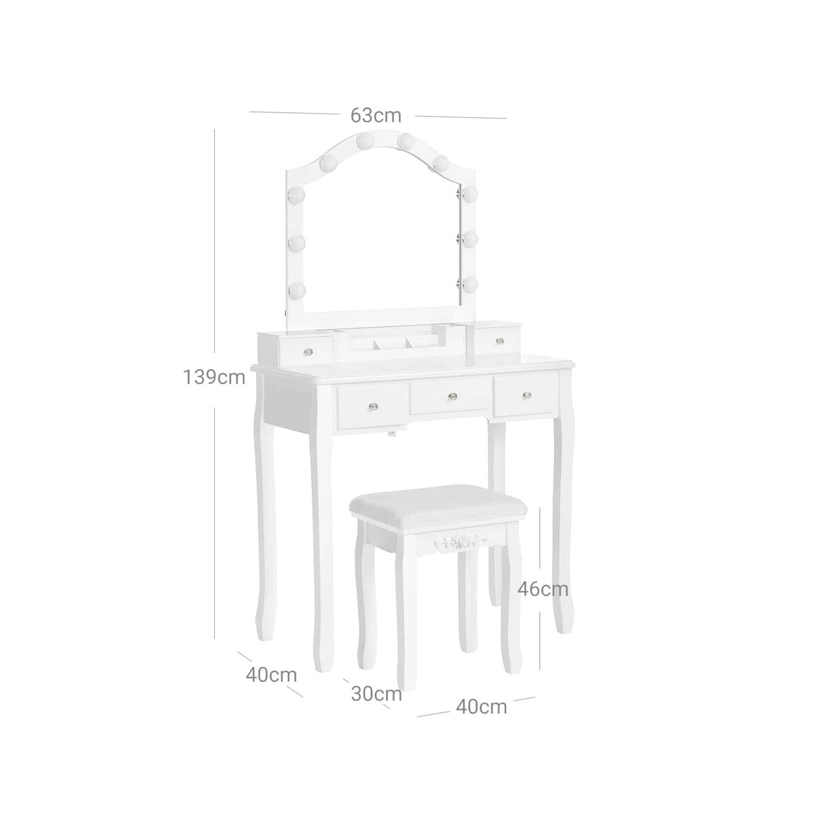 - 1 x kosmetinis staliukas su veidrodžiu