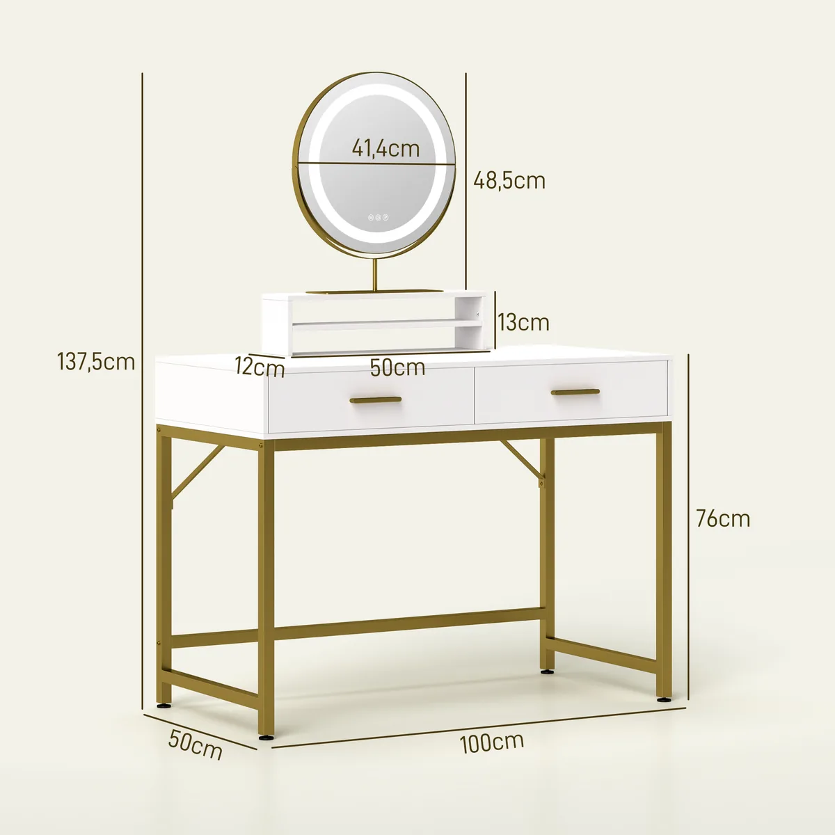 Kosmetinis staliukas Homcom 100x50x137,5cm., baltos/auksinės spalvos