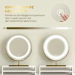 Pakeiskite savo ryto rutiną naudodami stilingą HOMCOM tualetinį staliuką su individualiu veidrodžiu. Šis elegantiškas tualetinis staliukas turi didelį plotą, laisvai stovinčią lentyną ir du stalčius. 360° pasukamas veidrodis su reguliuojamu LED apšvietimu užtikrina, kad išnaudosite visas jo galimybes. Po stiliaus tualetinis staliukas nuėmus veidrodį virsta prašmatniu stalu. Puikiai tinka jūsų asmeninei geros savijautos oazei!