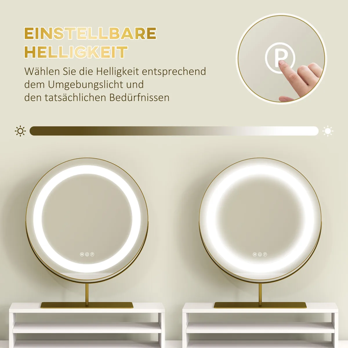 • ✔ Nuimkite veidrodį naudoti. Trijų spalvų LED lemputė su reguliuojamu ryškumu. Valdymo valdymui trys jutikliniai mygtukai