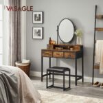 Kosmetinis staliukas su ovaliu veidrodžiu ir taburete yra puikus pasirinkimas jūsų miegamajam ar grožio kampeliui. Šis elegantiškas ir funkcionalus baldas suteiks jūsų erdvei prabangos ir patogumo.