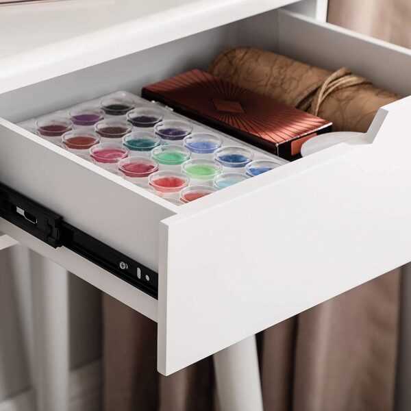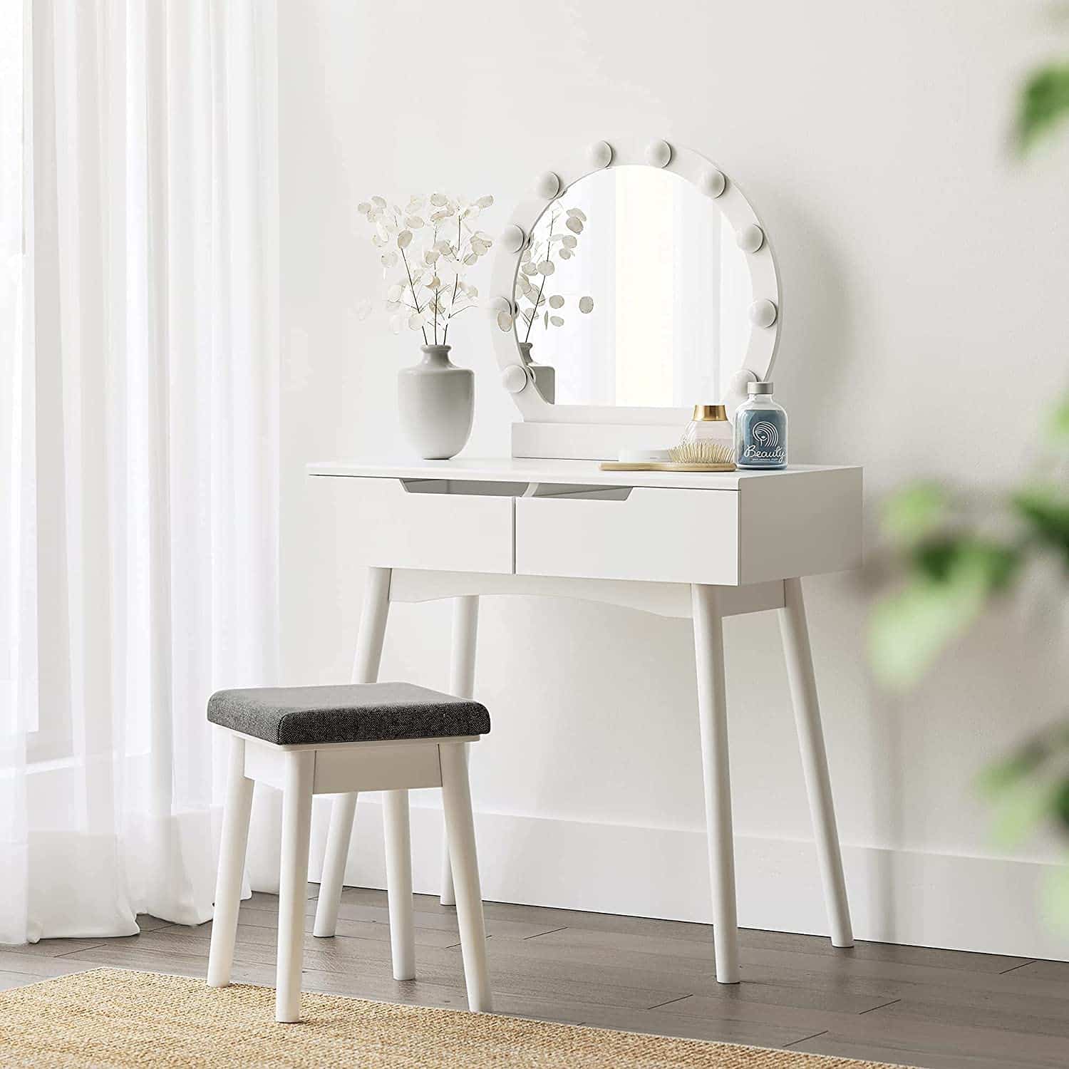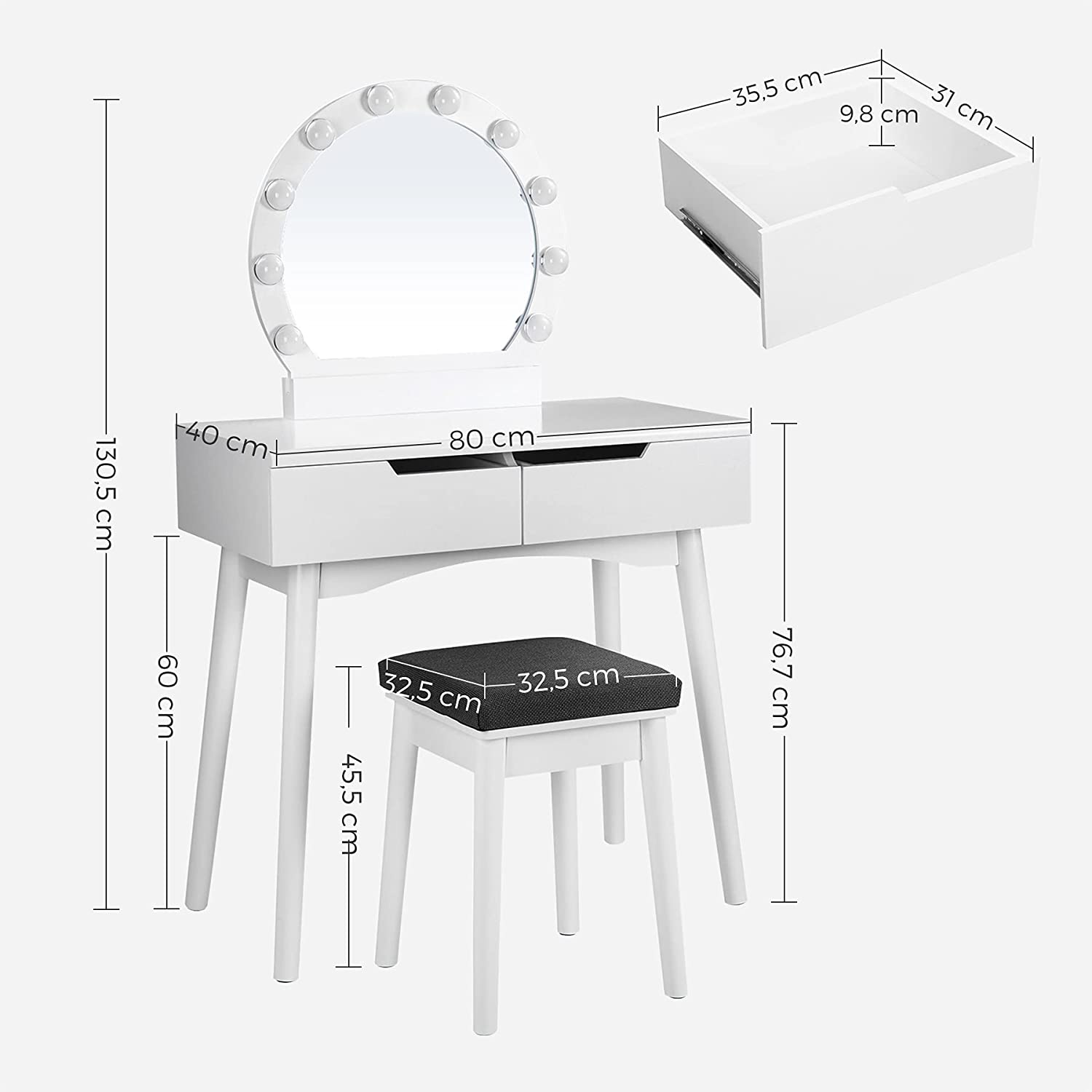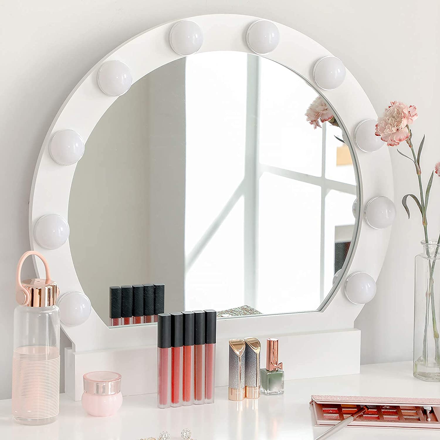 Jei ryte stovite prieš kalną higienos reikmenų, makiažo, makiažo šepetėlių ir kitų reikmenų, pats metas kurti tvarką! Su šiuo šviečiančiu kosmetiniu staliuku su veidrodžiu ir lemputėmis galėsite ne tik susidėti visus svarbius priedus, bet ir turėti savo grožio zoną, kuri atrodo tarsi iš Holivudo filmo.