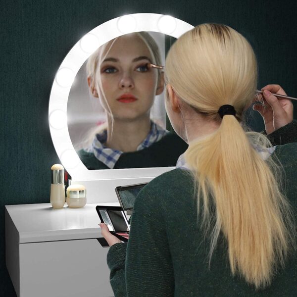 Tobulas apšvietimas tobulam makiažui: Lemputės ne tik pagražina apskritą veidrodį, bet ir užtikrina pakankamą šviesą, kai norite pasidaryti makiažą ar pažvelgti į veido detales. Tai reiškia, kad jums nereikės pirkti papildomo makiažo veidrodžio ar papildomos lempos.