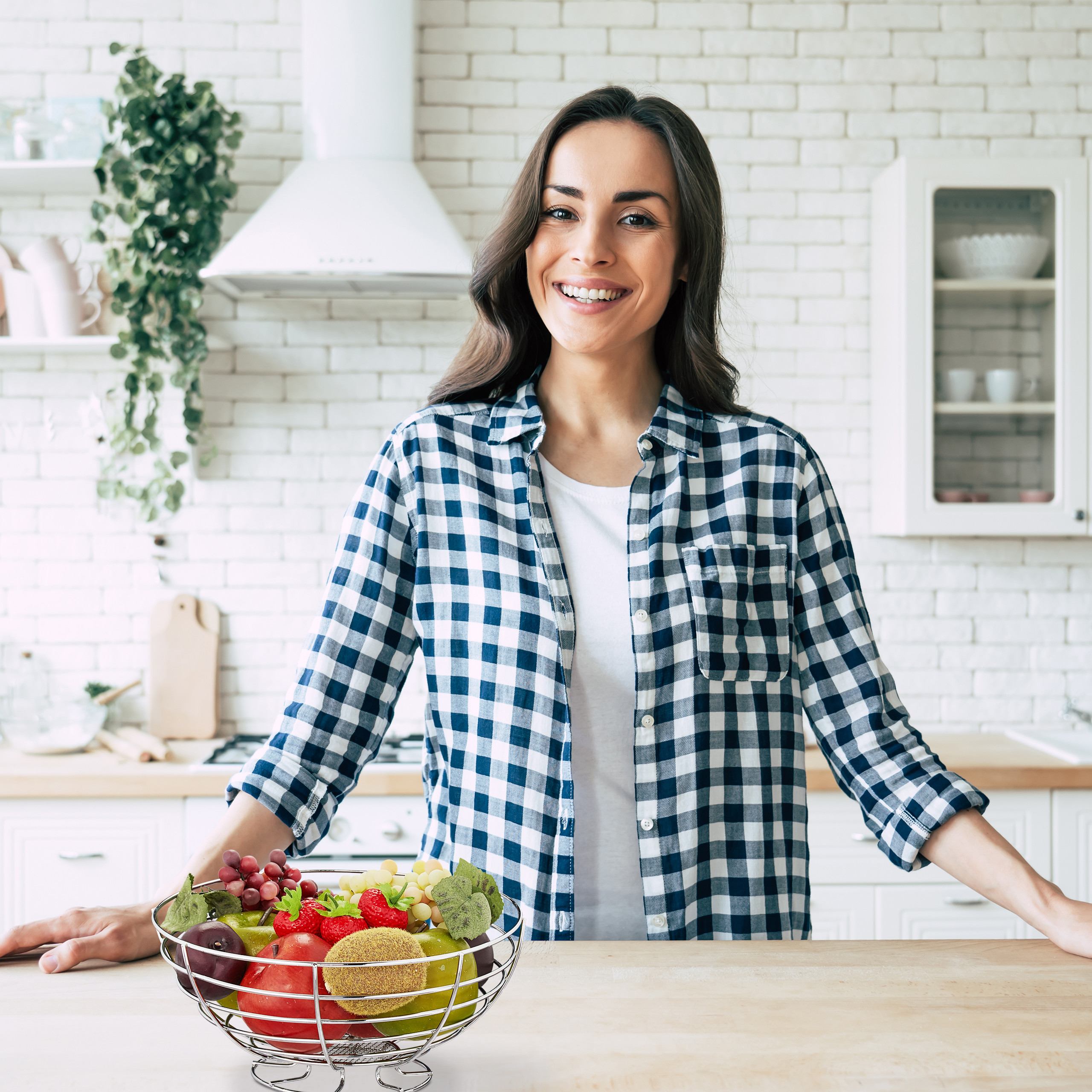 Pristatome elegantišką ir funkcionalų krepšelį vaisiams, kuris taps puikiu akcentu jūsų virtuvėje ar valgomojo stalo dekoracijoje. Šis krepšelis ne tik padės tvarkingai laikyti vaisius, bet ir suteiks jūsų interjerui modernumo bei stiliaus.