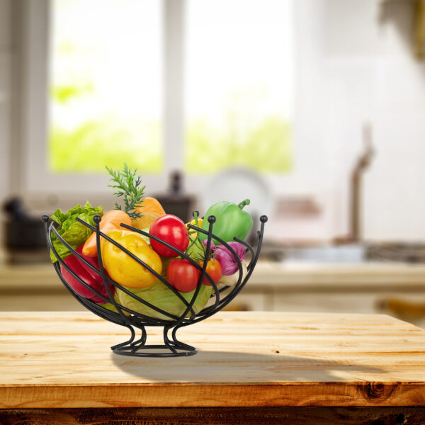 Pristatome elegantišką ir funkcionalų krepšelį vaisiams, kuris taps puikiu akcentu jūsų virtuvėje ar valgomojo stalo dekoracijoje. Šis krepšelis ne tik padės tvarkingai laikyti vaisius, bet ir suteiks jūsų interjerui modernumo bei stiliaus.