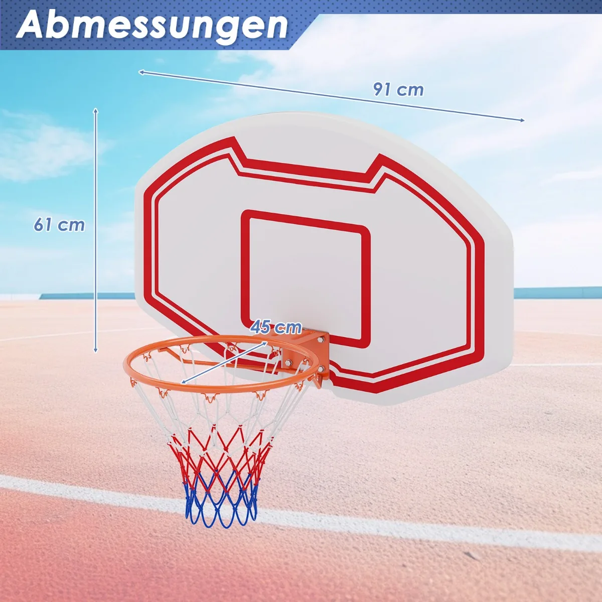 - Vidinis krepšinio lanko skersmuo: 45 cm