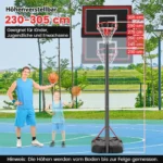 - Nešiojamas krepšinio lankas su 6 reguliuojamais aukščiais nuo 230 cm iki 305 cm.