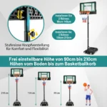 Krepšinio stovas 75x76x250cm., įvairių spalvų – tai patvarus ir reguliuojamas krepšinio įrenginys, pritaikytas vaikams ir pradedantiesiems. Tinkamas naudoti tiek lauke, tiek patalpose, jis padeda lavinti motorinius įgūdžius bei rankų ir akių koordinaciją.