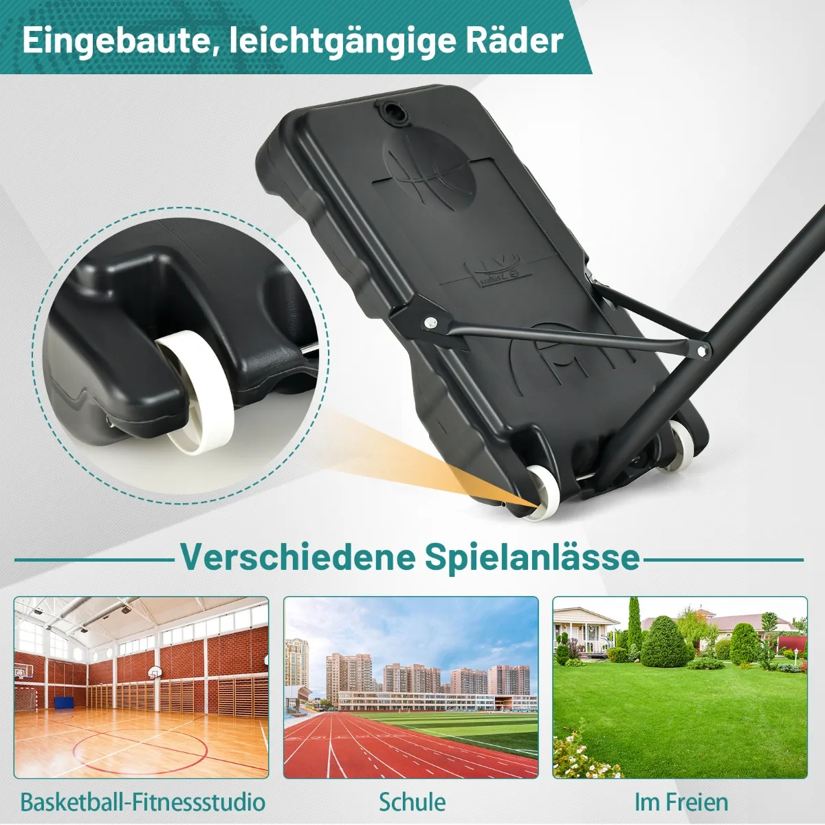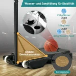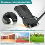 - Įmontuoti ratai palengvina krepšinio stovo perkėlimą.