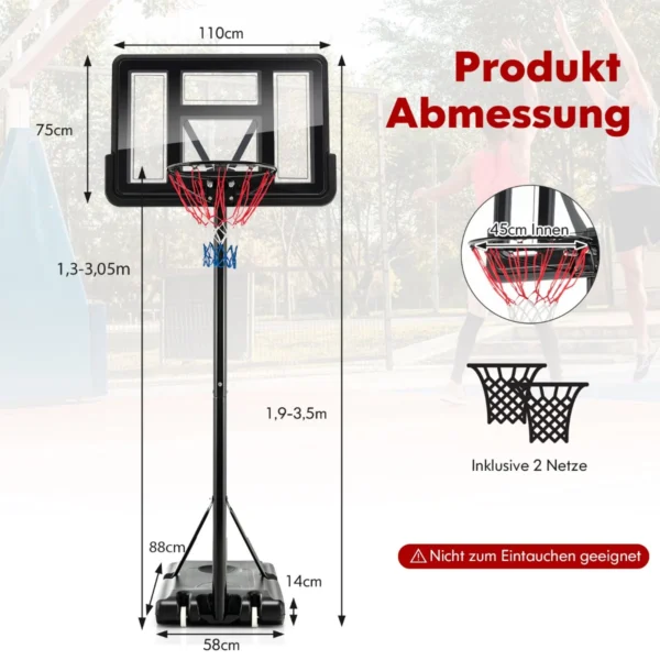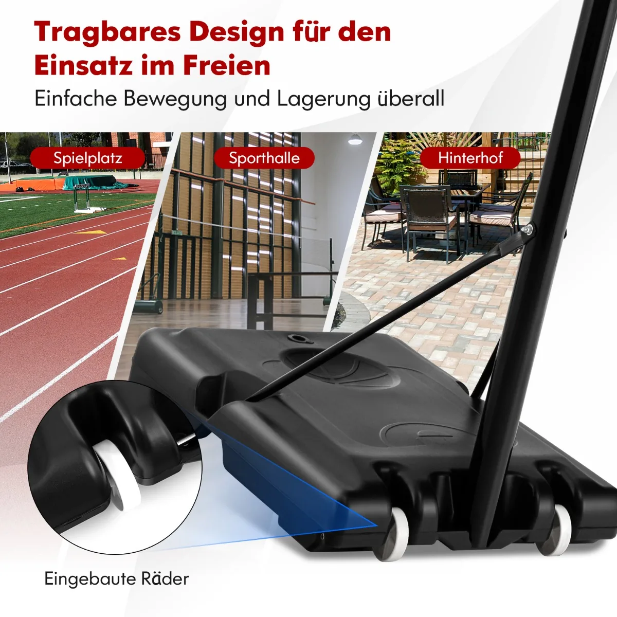 Krepšinio stovas 88x110x305 cm yra skirtas krepšinio žaidimui tiek lauke, tiek viduje. Reguliuojamas aukštis ir tvirtas pagrindas užtikrina stabilumą bei patogumą įvairaus amžiaus žaidėjams. Dėl kokybiškų medžiagų ir mobilumo jis puikiai tinka naudoti kiemuose, sporto salėse ar žaidimų aikštelėse.