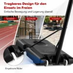 • Nešiojamas dizainas su dviem ratukais leidžia lengvai perkelti krepšinio stovą.