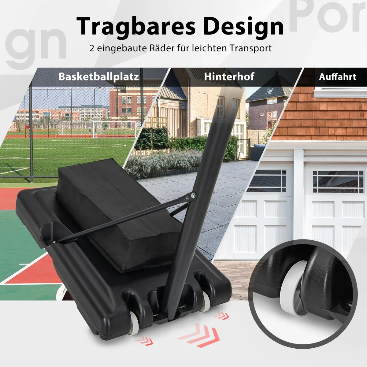 - Nešiojamas krepšinio lankas, tinkamas žaisti lauke ir patalpose.