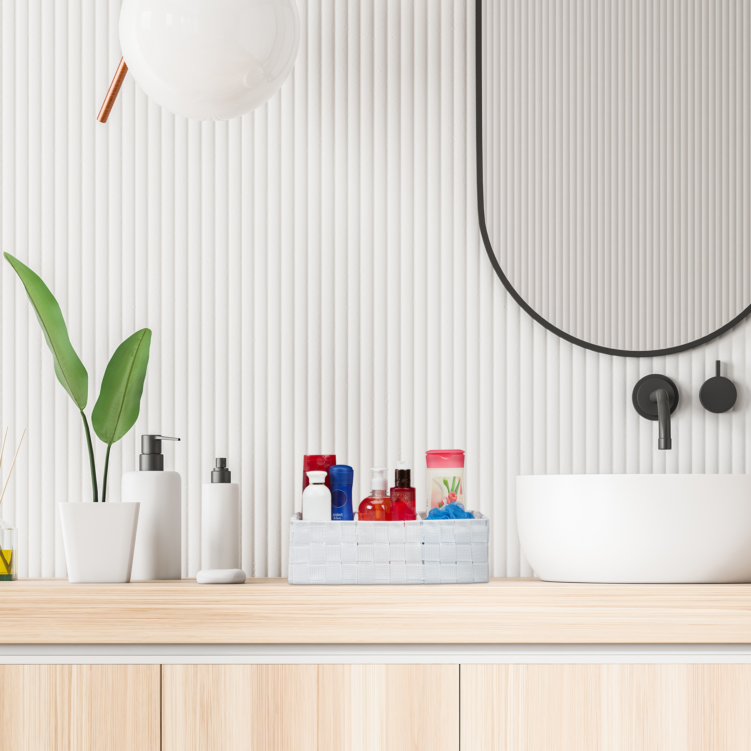 Šis elegantiškas ir funkcionalus krepšys su skyreliais yra puikus sprendimas tiems, kurie siekia tvarkos ir estetikos savo namuose. Baltos spalvos dizainas suteikia švaros ir šviesos pojūtį, todėl jis puikiai dera bet kokiame interjere.