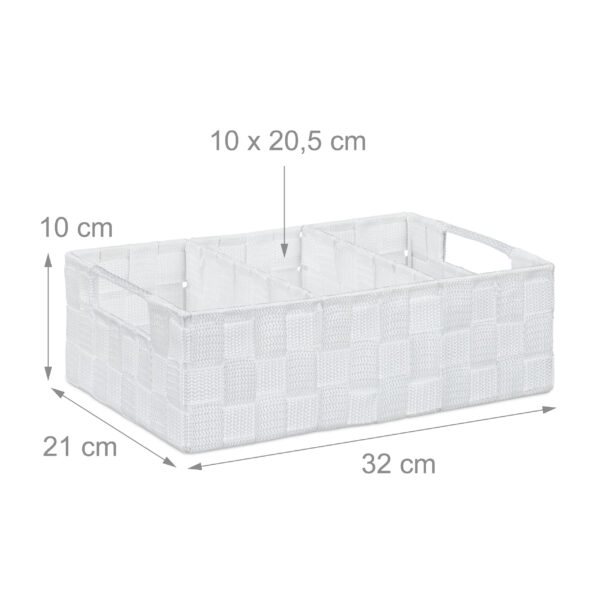 Krepšys su skyreliais 10x32x21cm, baltos spalvos