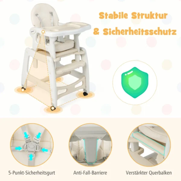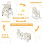 • 3-in-1 konvertuojama aukšta kėdutė, skirta kūdikio maitinimui ir žaidimui.