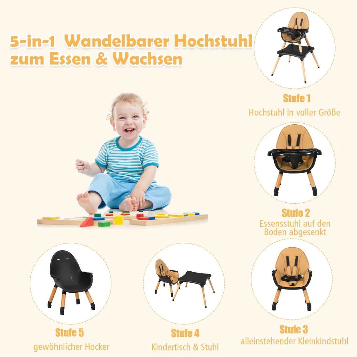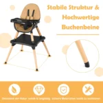 - Galimybė naudoti kaip maitinimo kėdutę, kėdutę su turėklu mažiems vaikams, įprastą kėdutę arba kėdės ir stalo komplektą.