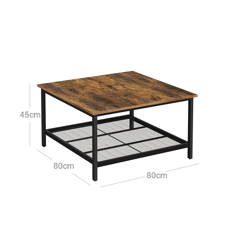 Šis kvadratinis kavos staliukas, rudos ir juodos spalvos, yra puikus pasirinkimas jūsų svetainei. Pagamintas iš aukštos kokybės medžio drožlių plokštė (MDP) ir plieno, jis suteiks jūsų interjerui vintažinį žavesį.
