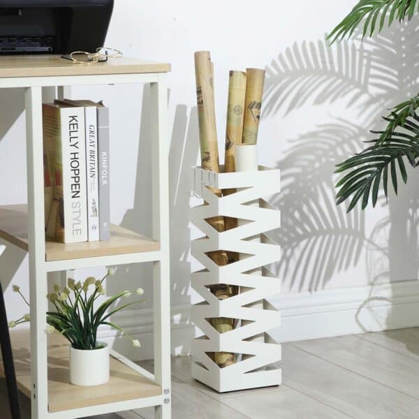 Šis geležinis skėčių stovas yra ir funkcionalus, ir stilingas. Jis ne tik suteikia galimybę laikyti skėčius, bet ir papuošia jūsų erdvę, traukdamas akį prieškambaryje ar įėjime.