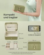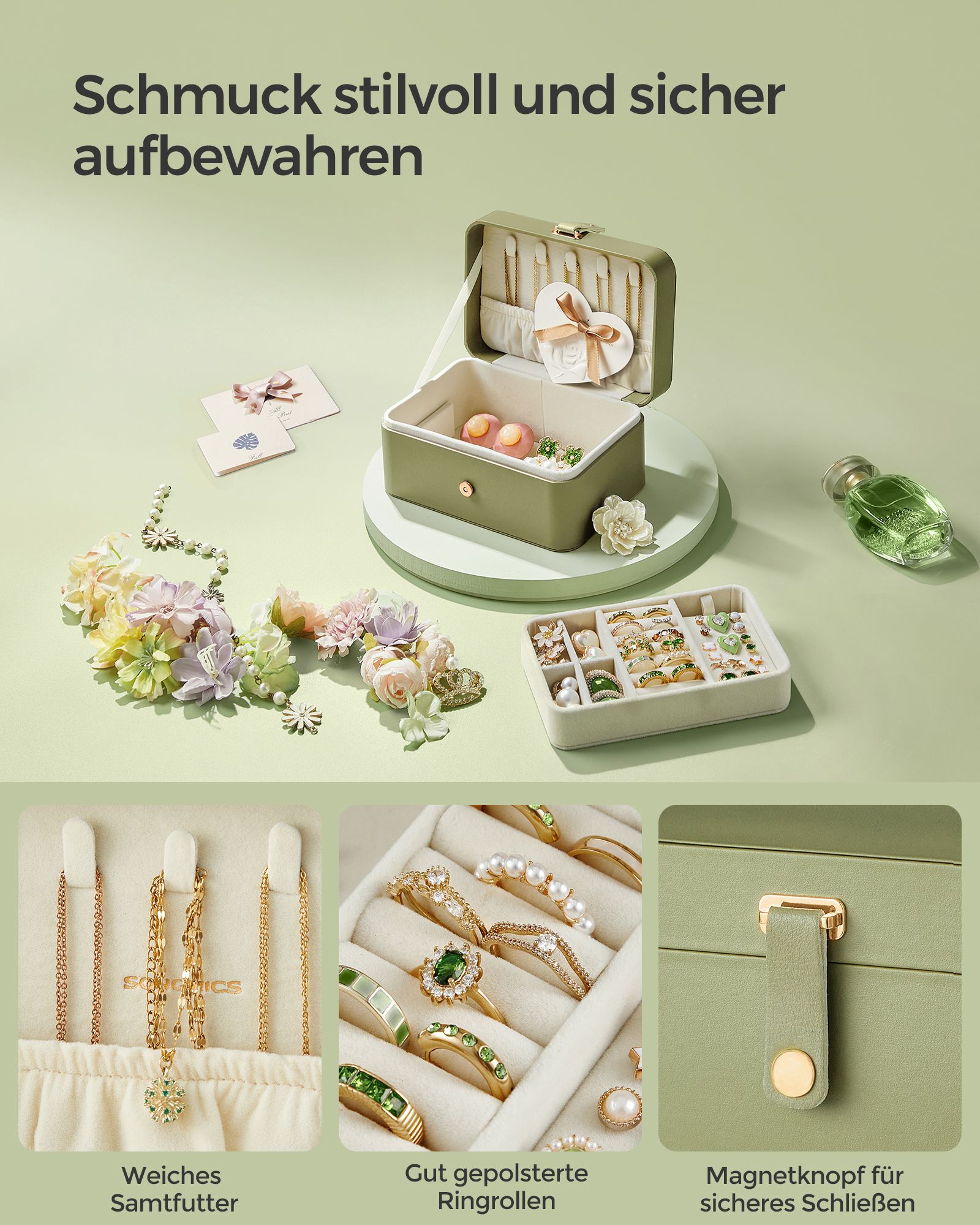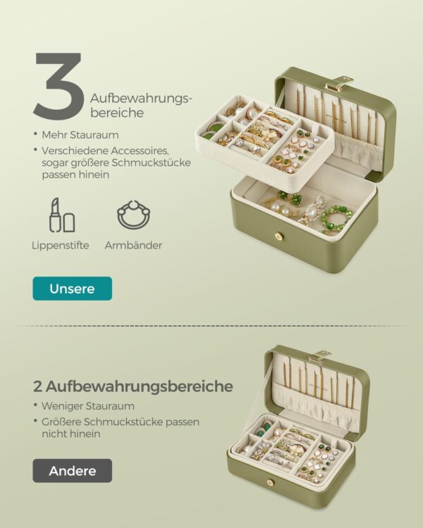 Ši laikrodžių dėžutė ne tik apsaugo jūsų laikrodžius, bet ir suteikia stilingą akcentą jūsų interjerui. Žalios ir smėlio spalvos derinys suteikia elegancijos ir modernumo.