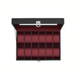 Ši elegantiška laikrodžių dėžutė yra puikus sprendimas jūsų laikrodžių kolekcijos saugojimui ir eksponavimui. Juodos ir vyno raudonumo spalvos derinys suteikia prabangos ir stiliaus jūsų interjerui.