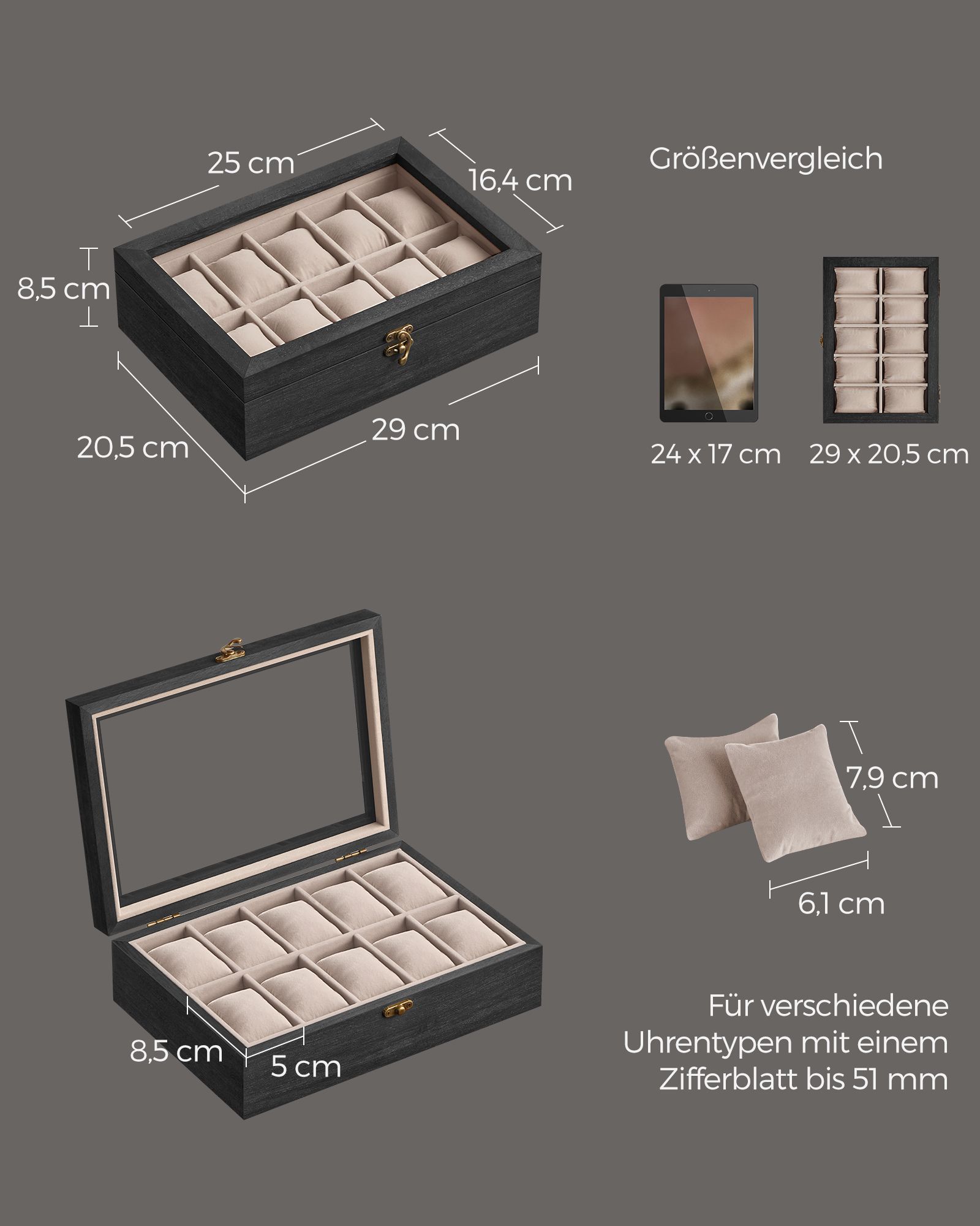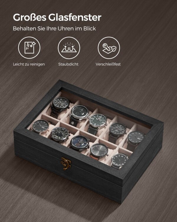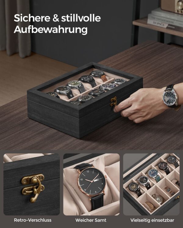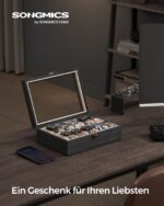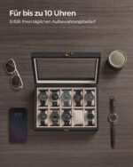 Ši laikrodžių dėžutė ne tik apsaugo jūsų laikrodžius nuo dulkių ir pažeidimų, bet ir leidžia juos patogiai laikyti bei eksponuoti.