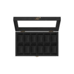 Ši elegantiška laikrodžių dėžutė yra puikus pasirinkimas jūsų laikrodžių kolekcijai saugoti ir eksponuoti. Juodos spalvos dėžutė suteikia prabangos ir stiliaus jūsų interjerui.
