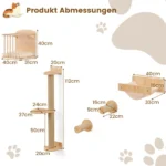 Laipiojimo sienelė katėms iš 5 dalių, šviesiai rudos spalvos, yra funkcionalus sprendimas jūsų augintinės aktyviam laisvalaikiui. Komplekte sujungtos laipiojimo, poilsio ir kasymosi zonos, kurios padeda palaikyti katės judrumą ir gerą savijautą.