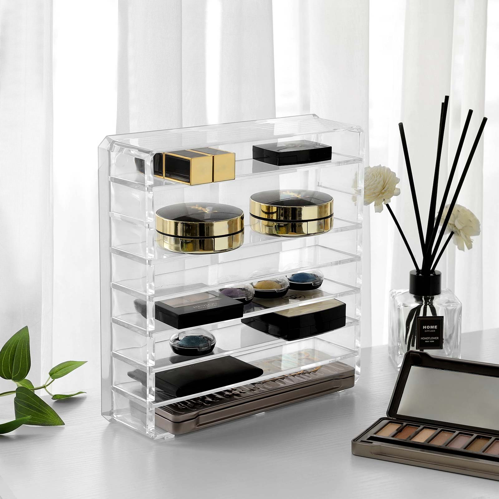 Viskas vienoje vietoje, tikras akių saldumas. Su 7 reguliuojamomis lentynėlėmis, SONGMICS organizatorius suteikia vietos visam jūsų makiažui. Taip pat galite greitai sutvarkyti nedidelius biuro reikmenis.